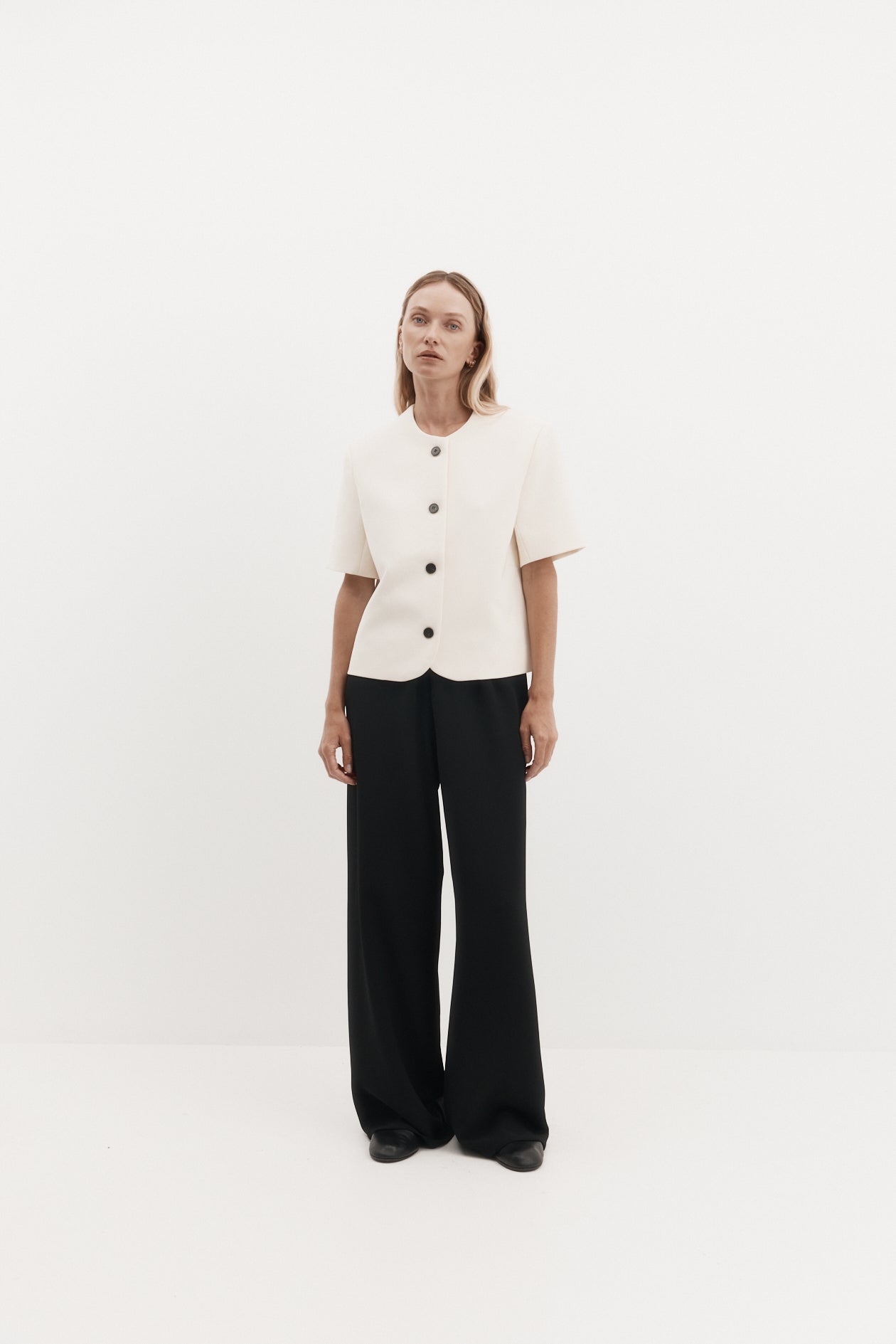 Short Sleeve Bardot Blazer in Bonded Suiting