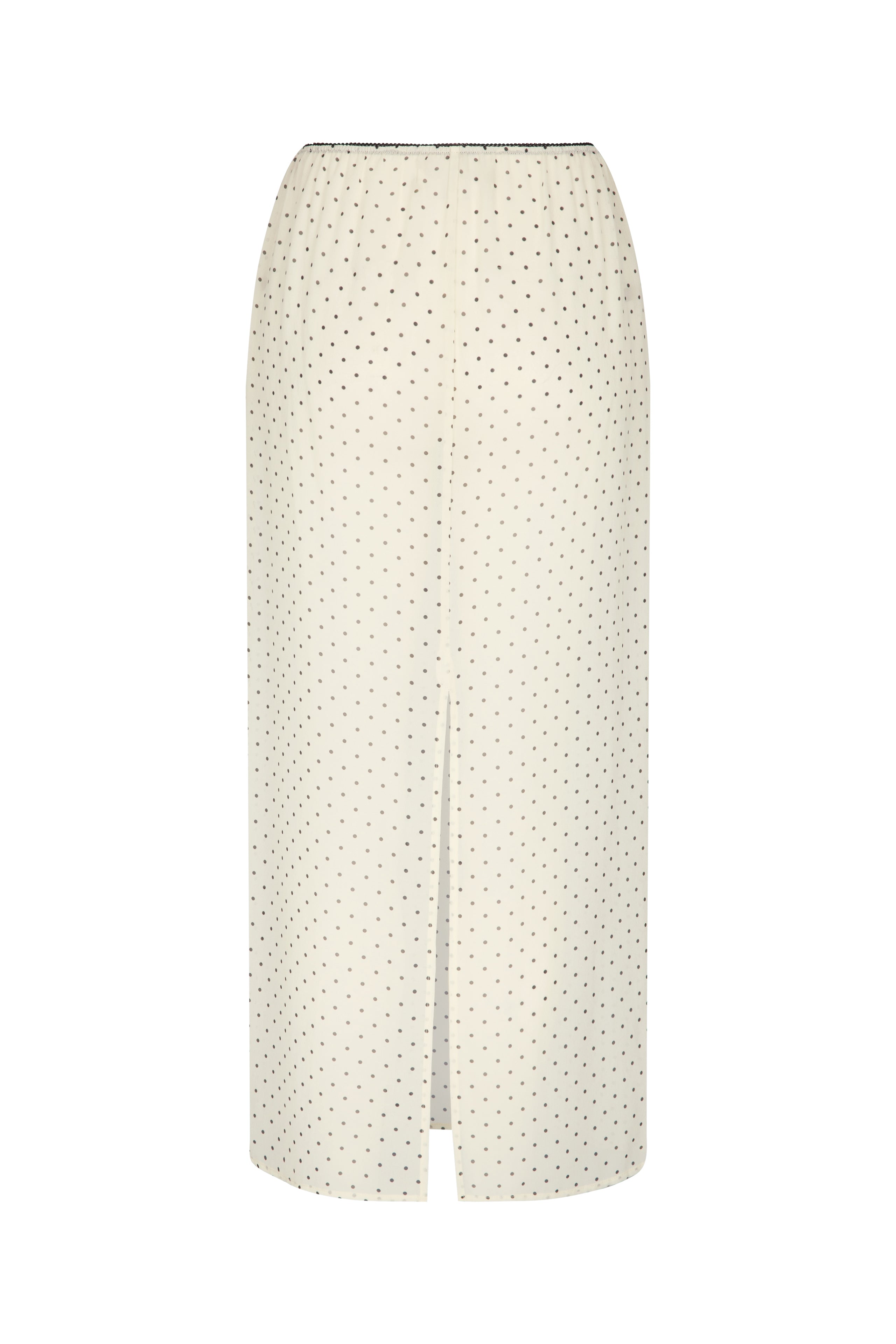 SKI01533PCRM Colour: Cream and black polka dot Material: Silk chiffon Composition: 100% Silk Care: Dry-clean only