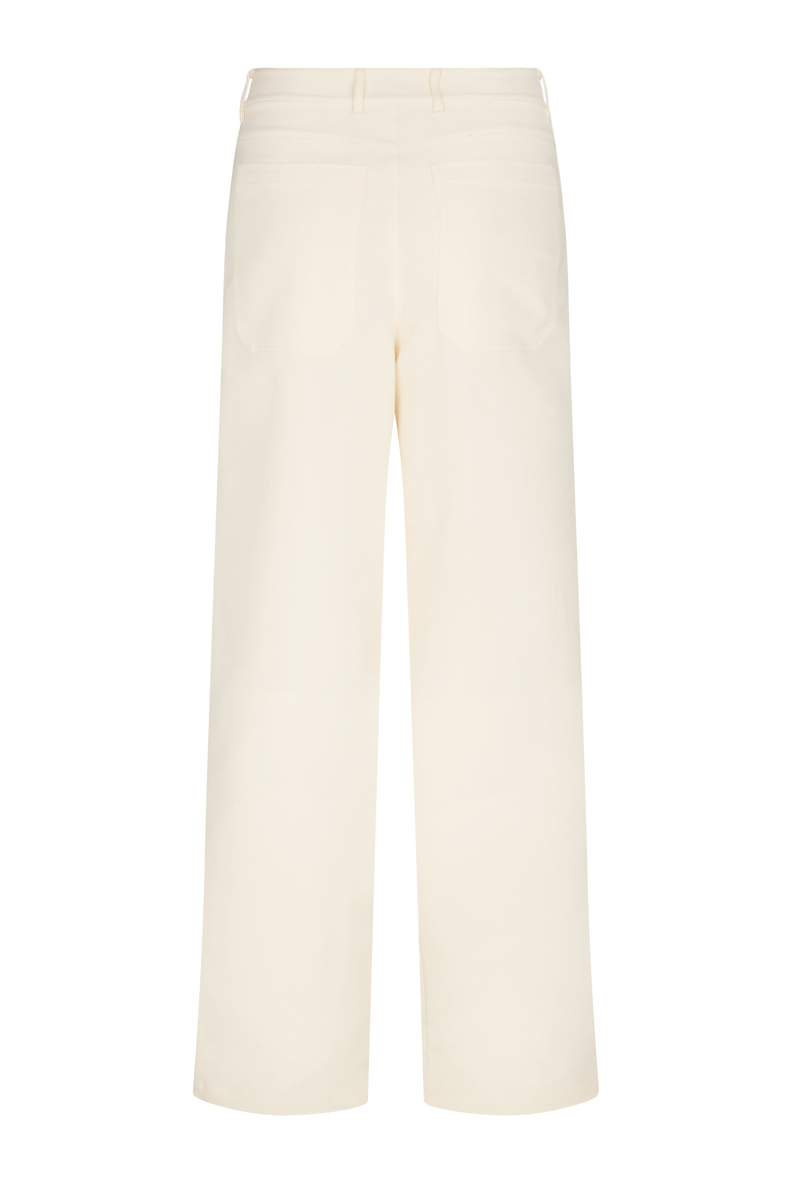 An alternative to the classic jean. Cut in a relaxed, full-length silhouette with subtle stretch. Features a mid-rise waist, stitched rounded front pockets, and patch back pockets. Finished with a front zip and snap closure.