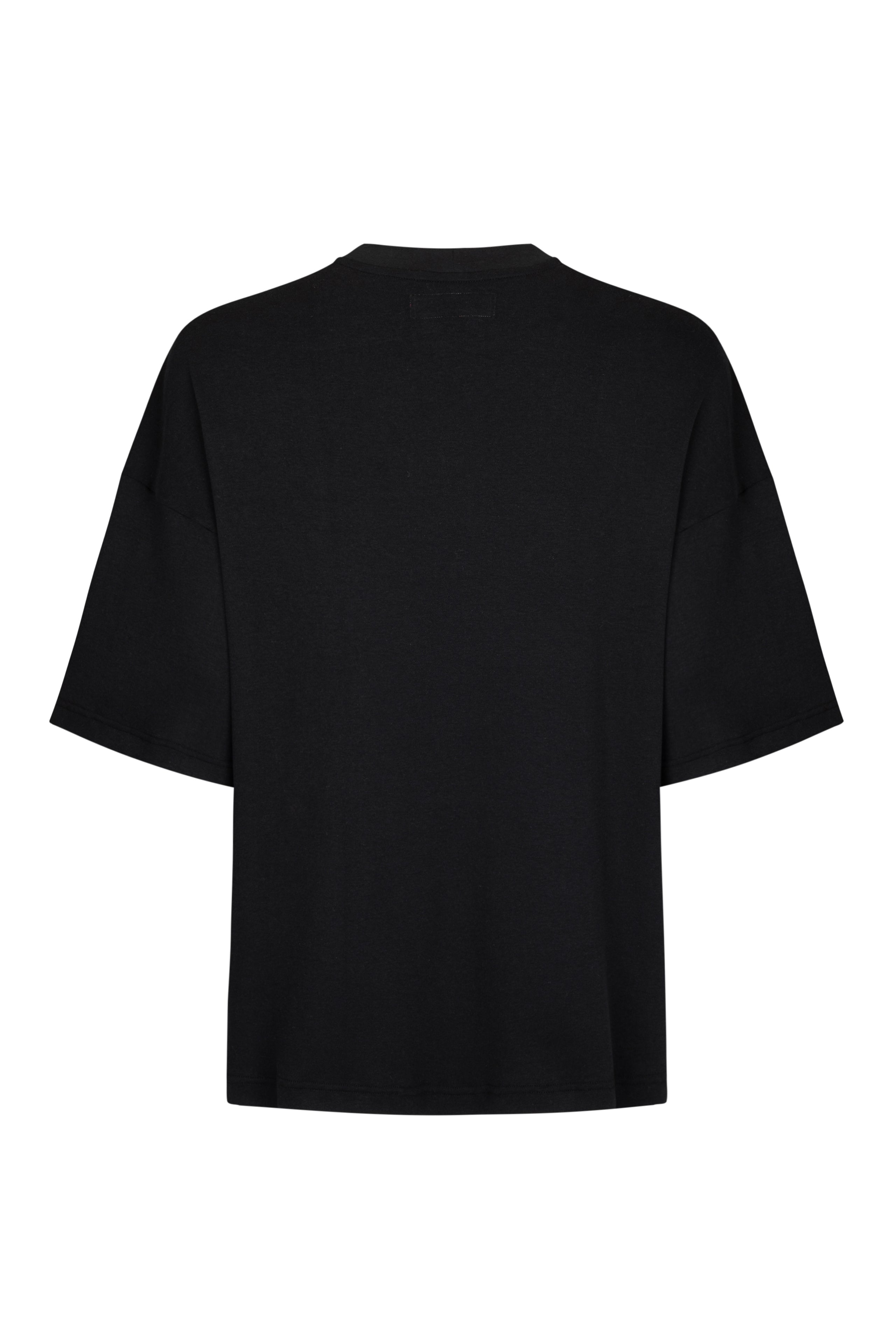 Cut from Cotton T-shirting with dropped shoulders and elbow grazing sleeves for an intentionally oversized fit. Signature black orchid beading embellishes high on the left chest.