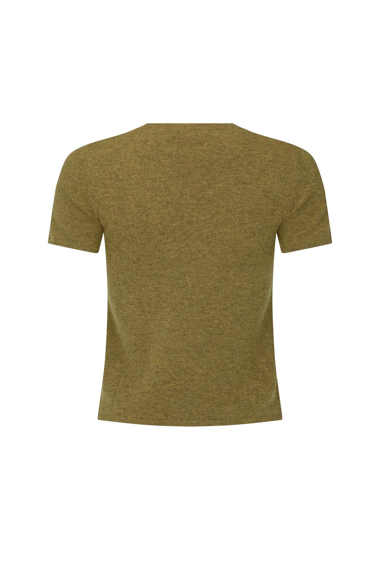 Lightweight cashmere wool knit t-shirt in jersey stitch, perfect for seasonal layering.